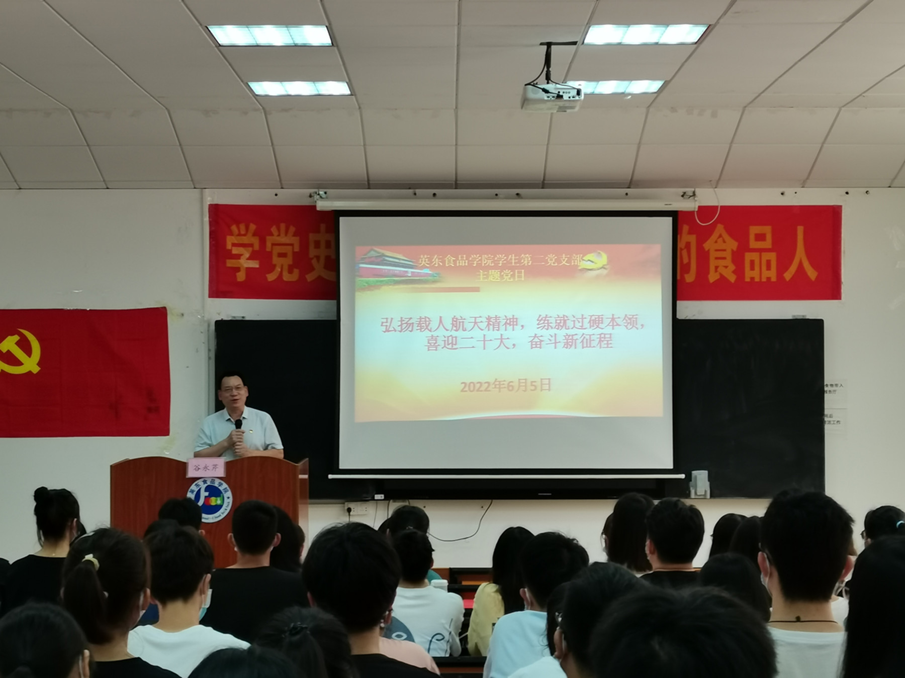 6月5日早上,英东食品学院学生第二党支部在英东楼学术报告厅开展了“弘扬载人航天精神,练就过硬本领,喜迎二十大,奋斗新征程”的主题党日活动。学院党委书记谷永芹出席活动,党支部全体党员以及支部发展对象、入党积极分子、入党申请人参加活动。活动由党支部书记谢灵来主持。
