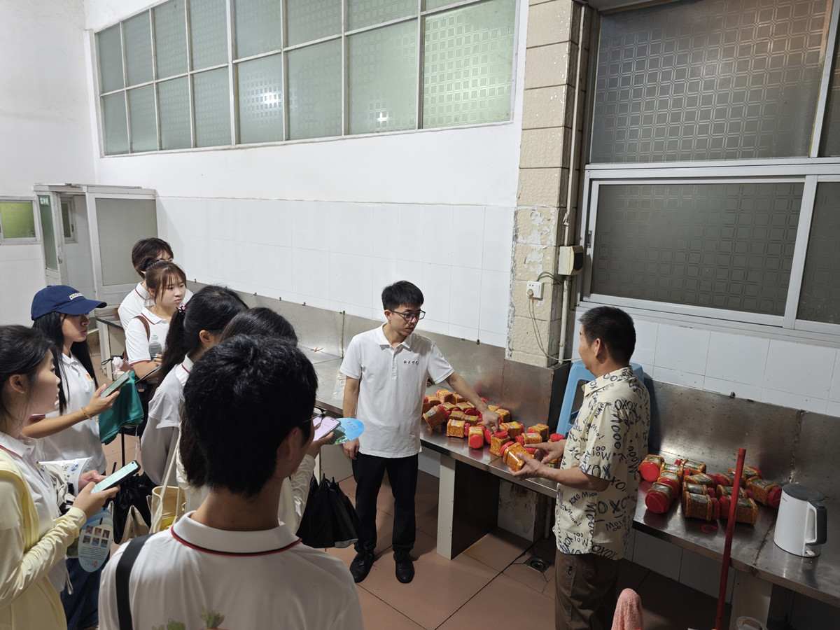 7月4号早上,实践队来到韶关市浈江区建雄食品有限公司,受到公司负责人的热情接待。他介绍了企业基本情况、腌制萝卜的生产工艺、市场销售渠道和消费者喜好情况,实践队深入一线参观腌制萝卜的生产车间,结合学院团队技术优势,针对生产效率、品质控制和市场营销等方面提出了建议。