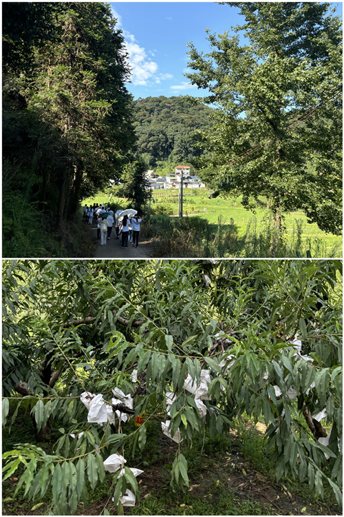 下午,在当地村干部的带领下,实践团成员分别来到藤茶种植基地、篛过村烤烟房、泷头鹰嘴桃种植基地,深入了解农作物的种植、管理和销售情况,通过交流探讨,对于产品研发、种植管理和品质改善等方面,实践团因地制宜提出一些建议。