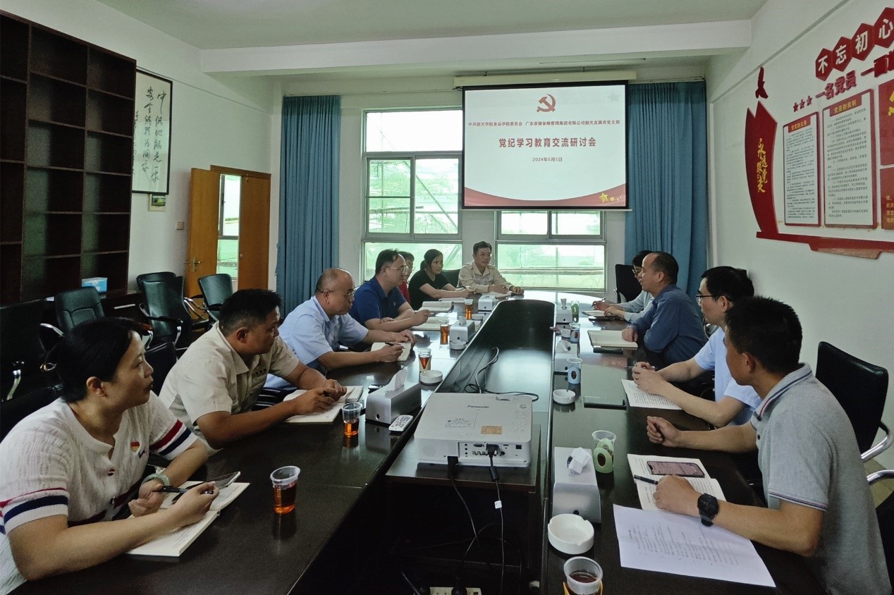 广东省储备粮管理集团有限公司韶关直属库刘大忠主任对食品学院一行的到来表示了热烈的欢迎。在随后举行的研讨会上,双方成员积极发言,热烈讨论,就党纪学习教育的实践与体会进行了深入的交流。大家结合各自工作实际,分享了在推动党纪学习教育中的心得与经验,并就如何将党建工作与业务发展相结合提出了富有建设性的建议。