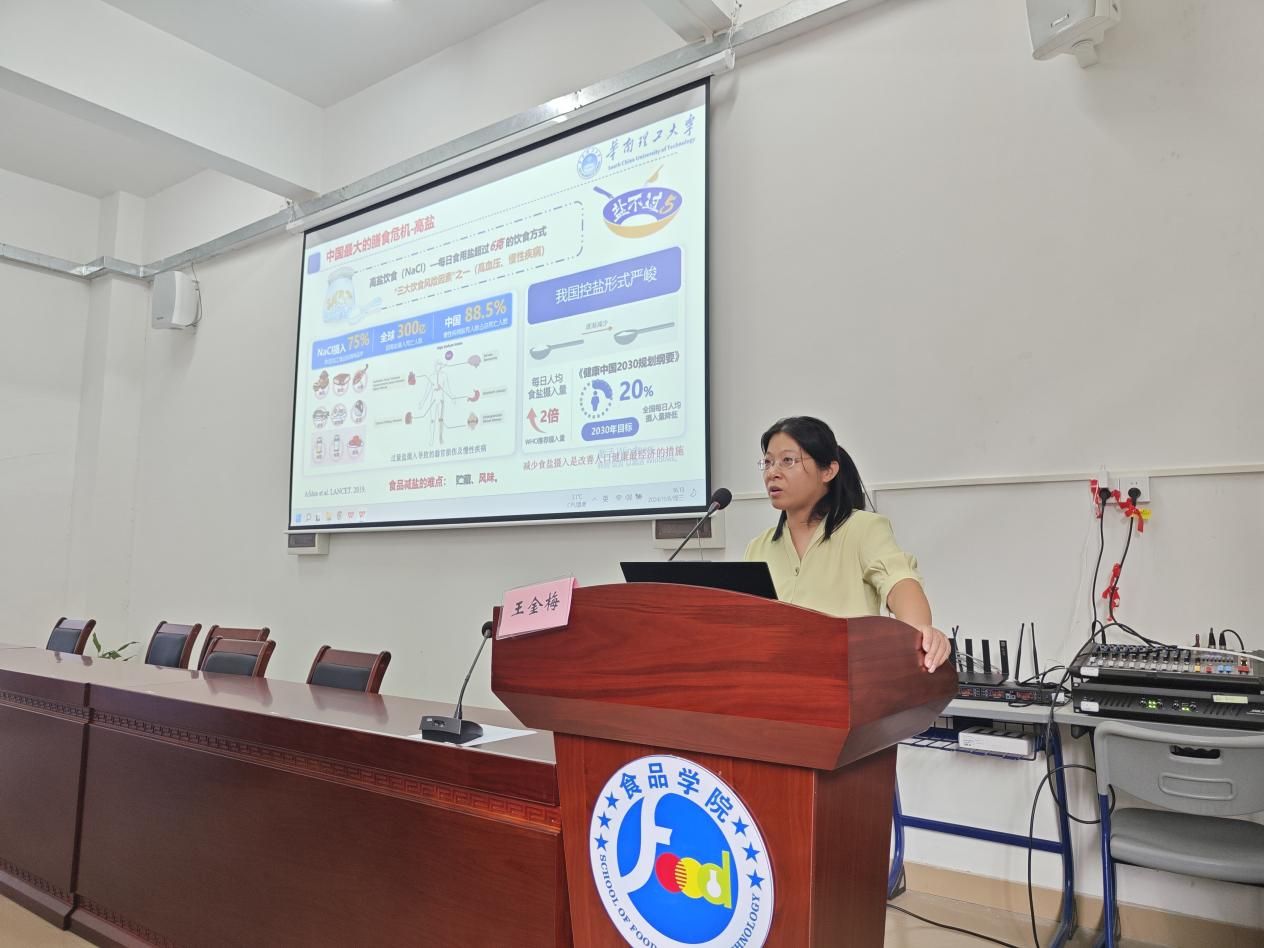 王金梅副教授主讲“植物基减盐配料的开发及咸味感知调控机制”学术报告,其围绕近年来报告人在咸味感知调控机制及减盐配料开发方向的研究工作,从口腔唾液修饰和味觉受体结合的角度揭示植物细胞壁多糖和大豆咸味肽的关键分子结构和味觉调控机制,为高效减盐配料的开发和应用提供理论依据。