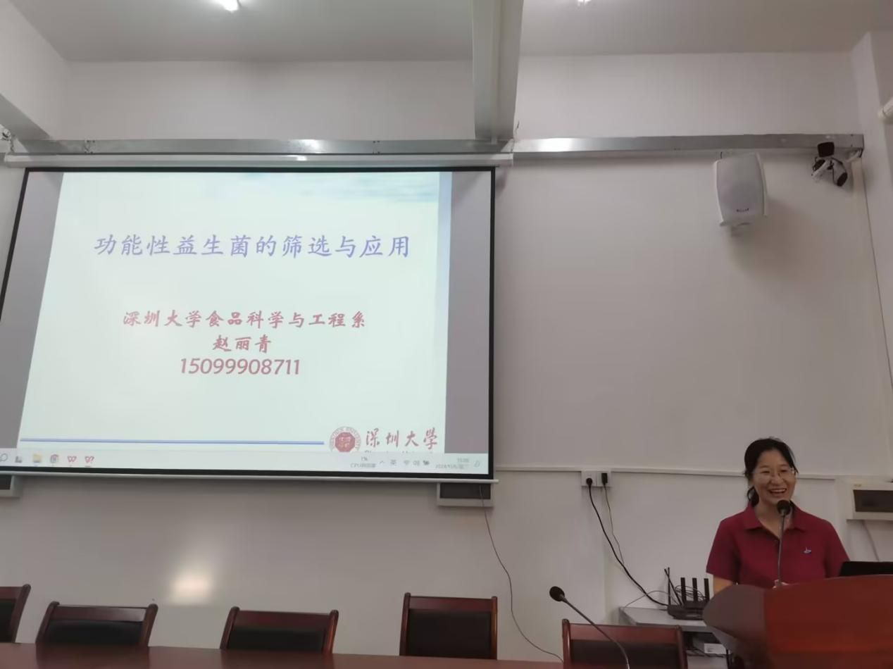 学术报告环节,赵丽青教授主讲“益生菌的分离及其功能鉴定”学术报告,主要介绍益生菌通过调节宿主黏膜与系统免疫功能或通过调节肠道内菌群平衡,促进营养吸收保持肠道健康的作用,从而促进宿主健康,通过从中国传统食物如开菲尔谷物、传统泡菜、奶酪等分离获得乳杆菌,继而对其产生胞外多糖及其生物学功能进行鉴定。