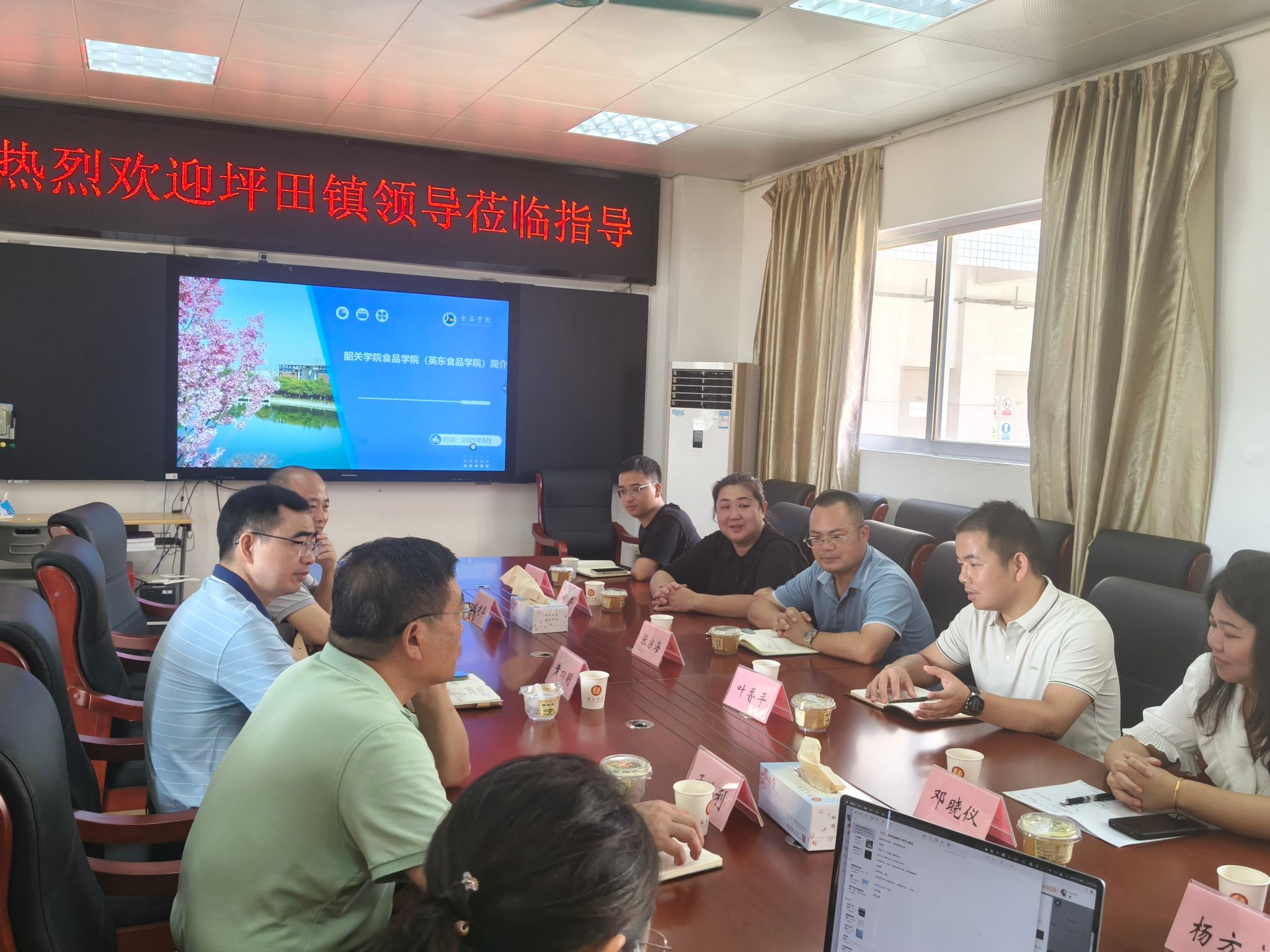 2025年8月27日,坪田镇以叶香平镇长为代表的 6 人一行,赴韶关学院食品学院开展帮扶合作交流。韶关学院食品学院院长朱建华、党委书记黄四明、五级组织员于玲利、办公室主任华军利,以及坪田镇科技特派员(韶关学院)敬思群教授及其团队的陈爽老师共同参会。