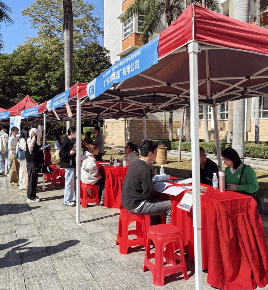 见面会现场人头攒动,气氛热烈。来自广东省内食品生产、加工、检测、研发等领域的40余家知名企业设展招聘,提供了涵盖食品研发工程师、质量控制专员、生产管理等多个岗位的数百个就业机会。学院大四毕业生们带着精心准备的简历,穿梭于各企业展位之间,主动与招聘负责人交流岗位需求、职业发展路径等问题,从容展示专业素养与实践能力。“学院提前帮我们梳理了面试技巧,还针对性分析了行业就业趋势,让我在求职时更有方向和底气。”食品质量与安全专业毕业生小潘说道。