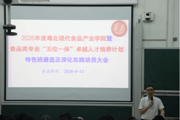 本次大会既是2026年度粤北现代食品产业学院暨“五位一体”卓越人才培养计划特色班遴选的启动动员会,也是一次精准对接产业需求的专业发展指导会,内容紧扣食品类专业人才培养核心目标、针对性强。参会2023级学生普遍表示,通过本次会议进一步明确了食品专业的发展方向与能力成长路径,对粤北现代食品产业学院暨“五位一体”卓越人才培养特色班的培养体系高度关注,将积极准备遴选申报,主动规划学业与职业发展,努力成长为适配食品产业发展需要的高素质专业人才。