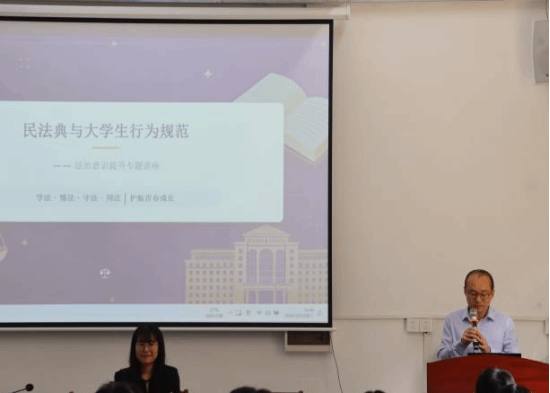课上,袁翠老师以《中华人民共和国民法典》为核心,系统阐释平等、自愿、公平、诚信、守法与公序良俗、绿色六大基本原则,结合大学生学习、生活、社交、网络行为等高频场景,以案释法、以法明理,清晰划定校园生活的法律边界。此外,袁翠老师还围绕学术诚信、考试纪律、兼职实习、劳动维权等关键事项作出提醒,告诫同学们杜绝学术不端、考试作弊、性骚扰等违规违法行为;在兼职实习中务必签订正规协议、留存有效证据,依法维护自身劳动权益。