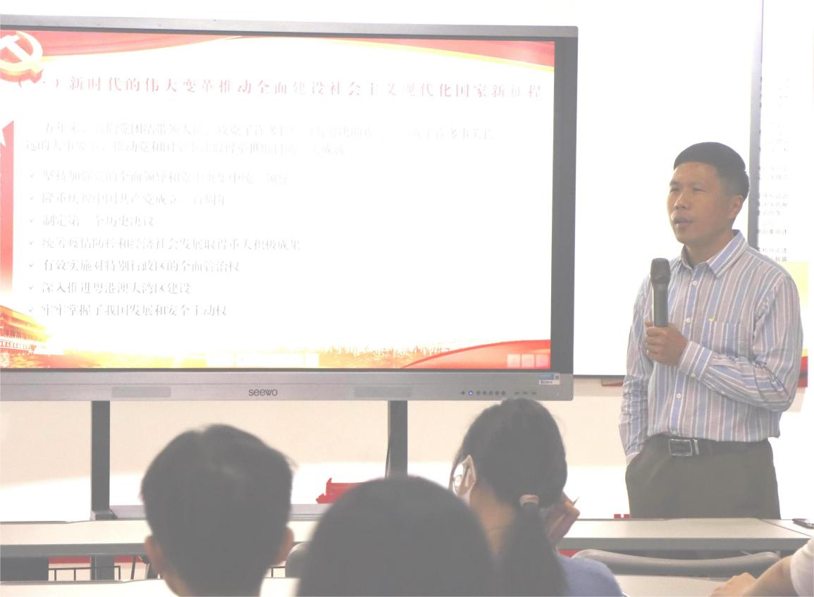 会上,骆雄辉以“深入学习贯彻党的二十大精神 立志奋斗做新时代好青年”为主题,从“在筚路蓝缕百年征程、深情寄语中领悟党对青年的嘱托关怀”“在感悟伟大历史意义、弘扬伟大建党精神中深入学习党的二十大精神”“在认真学习专业知识、不断增进自身本领中贯彻党的二十大精神”紧扣党的二十大报告原文带领大家深入学习。“青年强,则国家强”,骆雄辉希望学子们,“要坚定不移听党话、跟党走,怀抱梦想又脚踏实地,敢想敢为又善作善成,立志做有理想、敢担当、能吃苦、肯奋斗的新时代好青年。”深入浅出的讲解让同学们受益匪浅,纷纷表示要奋楫笃行,学好本领。