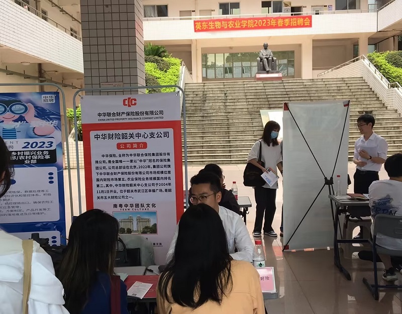英东生物与农业学院于5月8日在英东楼一楼大厅举办了2023年春季校园招聘活动,广东省内13家企业前来开展招聘活动。