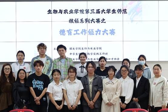 决赛结束后,评委嘉宾与参赛选手合影留念,为本次大赛画上圆满句号。韶关学院生物与农业学院将持续深化师范生培养模式,以赛促学、以学促行,为新时代教育事业输送更多有理想、有本领、有担当的青年人才。