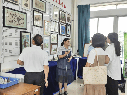 随后,学院园艺专业骨干教师带来访团队参观了学院的压花作品,并进行了系统的压花技能培训,通过理论讲解和实操演示,生动展现了压花团扇的制作工艺和教学要点。