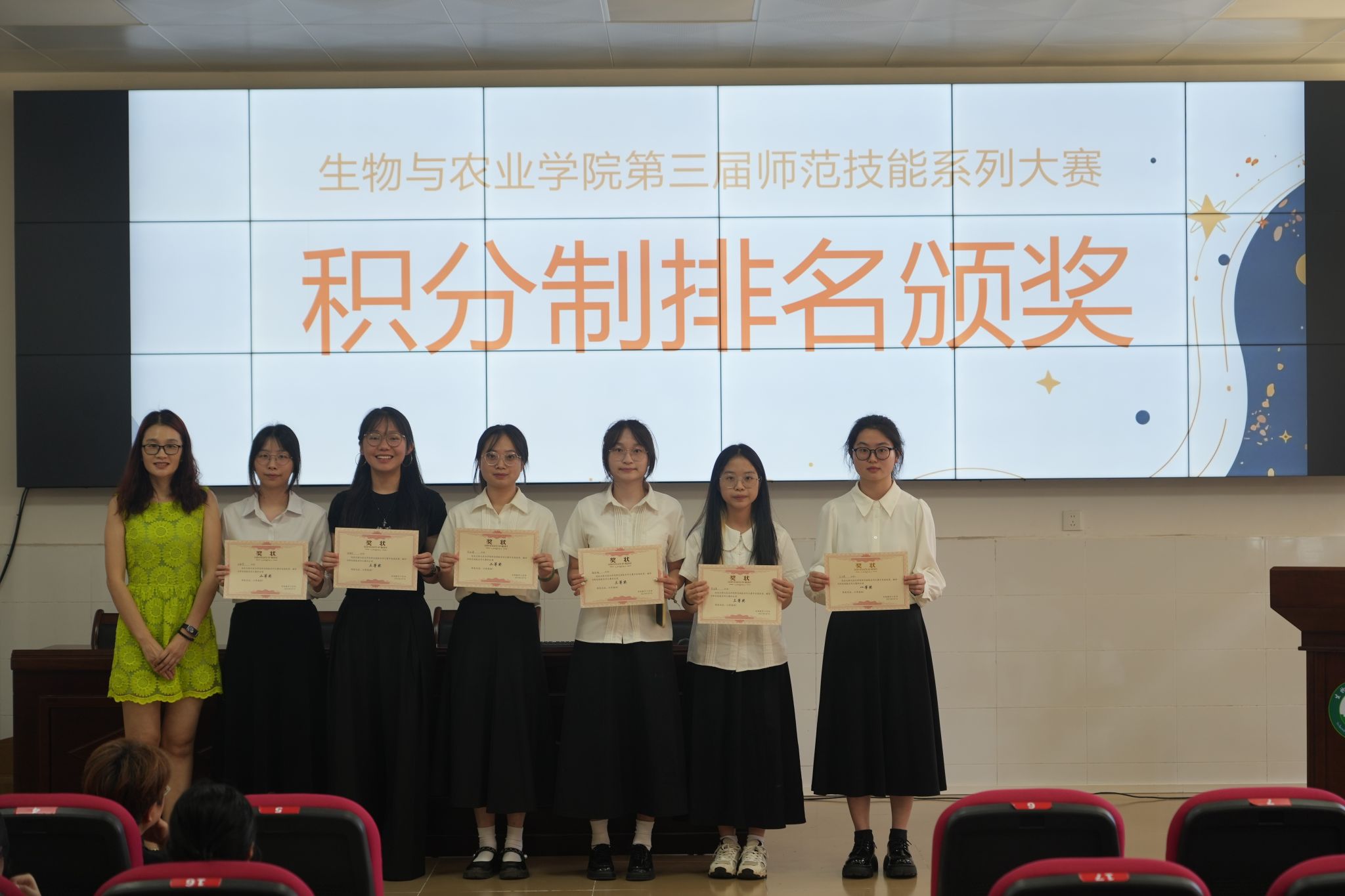 此次“生物与农业学院2025年师范技能系列大赛颁奖仪式暨获奖作品展示”活动的成功举办,不仅展示了生物科学专业学生的优秀成果和良好风貌,也为同学们搭建了一个相互学习、相互交流、共同成长的平台,进一步激发了同学们对师范技能学习的热情,对提高学院师范生培养质量起到了积极的推动作用。相信在未来的学习和实践中,生物与农业学院的学子们将继续以赛促学、以学促教,不断提升自身的师范素养和教学能力,为成为优秀的人民教师而努力奋斗。