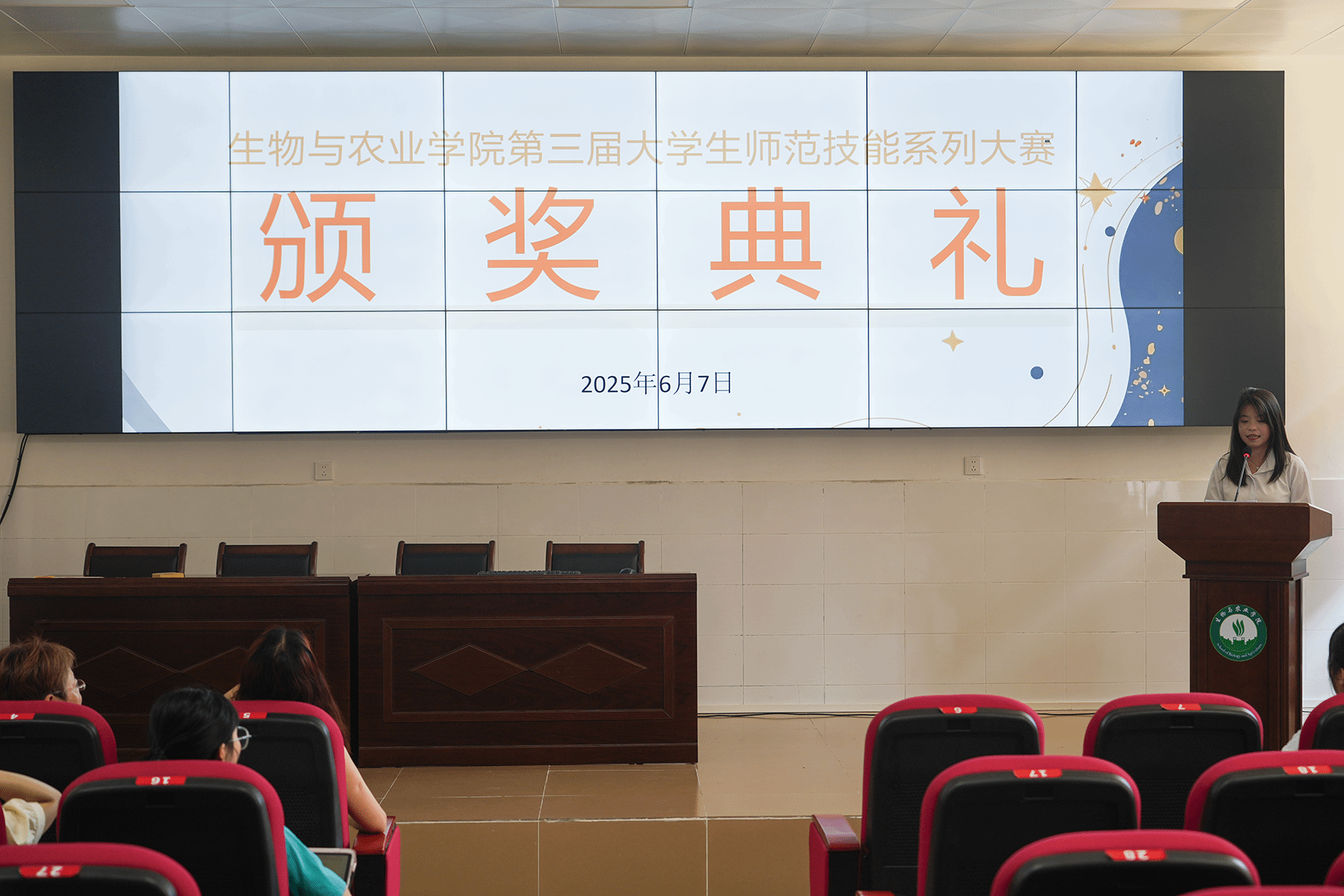6月7日,韶关学院23级生物科学专业学生齐聚修德楼B101,隆重举行“生物与农业学院2025年师范技能系列大赛颁奖仪式暨获奖作品展示”活动。此次活动不仅是对参赛选手的表彰与鼓励,同时也作为23级学生重要的见习活动之一,为同学们提供了一个学习与交流的优质平台。