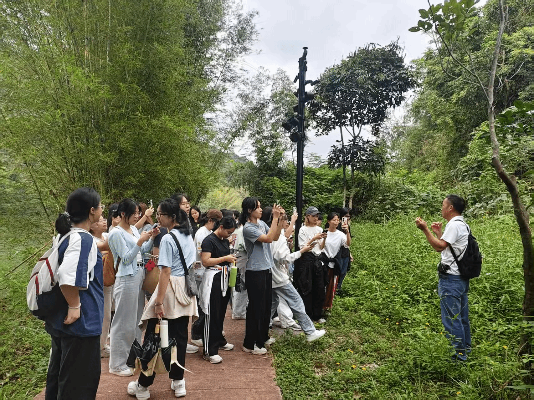 实习期间,联合国教科文组织世界地质公园评估专家、韶关市丹霞山管委会三级调研员陈昉和丹霞山特级导师、生物多样性保护专家陈再雄分别作了题为《画里丹霞,心灵家园——丹霞山自然与艺术疗愈探索和实践》和《丹霞山植物多样性》的专题报告,带领师生从生态保护与艺术疗愈的角度深入认识丹霞山的人文与自然价值,为学生的专业学习与艺术思考提供了新视角。