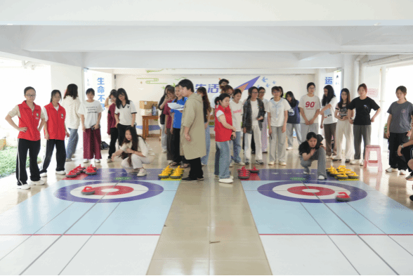 活动邀请了心理健康教育与咨询中心蔡瑶瑶老师担任专业指导,全程紧扣“三全育人”、“心理育人”和“社区育人”主线,创新设计了“投壶得分+战略配合”双模式赛制,将心理健康科普融入竞技环节。参赛队伍需经历障碍赛和对抗赛的角逐,在“投壶得分”与“战略配合”中培养团队协作与抗压能力。比赛现场同步设置心理健康知识展板及心情寄语墙,参赛选手22生物科学01班高绮雯同学表示:“冰壶比赛让我学会在压力下保持冷静,这种体验比单纯说教更有收获”。