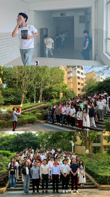 为进一步提高广大师生主动避险避灾的意识和能力,提高学生社区面对突发性险情灾情时的协调组织及应急处置能力,4月30日下午,生物与农业学院、食品学院、政法学院、数学与统计学院四院在知行区蔷薇苑开展消防安全知识讲座暨联合应急疏散逃生演练。食品学院党委书记黄四明,生物与农业学院党委副书记黎林,保卫处侯晃灿老师及各学院负责社区工作的辅导员和120余名学生参加了活动。