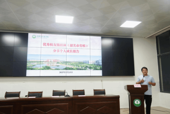 紧接着,今年韶关市“劳动模范”称号获得者熊桂林校友也带来了精彩的分享。他以自身职业生涯为实例,讲述了如何在平凡岗位上创造非凡价值,强调了责任感、敬业精神与团队合作的重要性。熊桂林校友的分享情感真挚,感染力强,激励着在场的每一位师生,让大家深刻认识到,只要心怀梦想、脚踏实地,就能书写属于自己的精彩篇章。