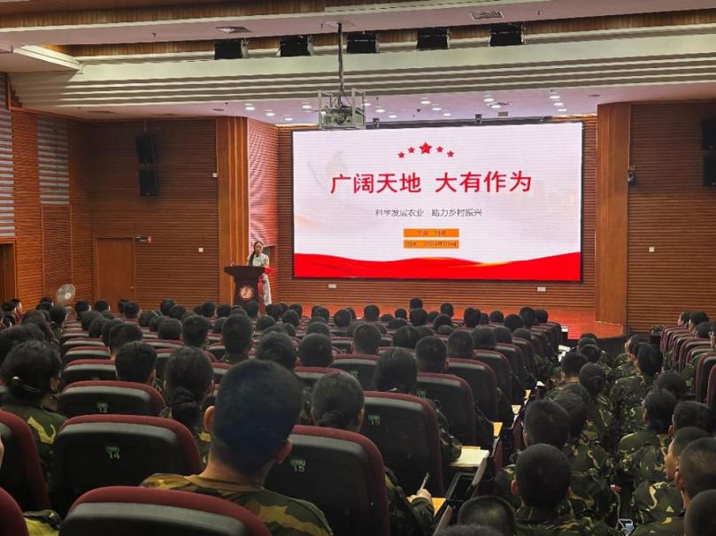 刘炳将自己的创业经历娓娓道来,面对重重困难,她敢闯敢试,勇抓机遇,将农产品与互联网结合,助力乡村振兴,并取得了可喜成绩。她还结合自身经验寄语2024级全体新同学:要努力学习筑牢基础,敢为人先,团结一致汇聚力量,注重实践探寻真知。