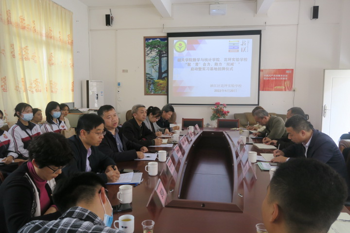 为充分发挥数学师范教育的专业特点,主动服务地方基础教育发展,凝聚青年大学生的合力,助力“双减”。4月20日,数学与统计学院、花坪实验学校“聚‘青’合力,助力‘双减’”启动暨实习基地挂牌仪式在浈江区花坪实验学校举行。学院党委书记邓春林、院长宋杰、副院长罗亮、李少勇、花坪实验学校校长杨庆元、党员代表及义教队员、协会成员参与活动,宋杰主持仪式。