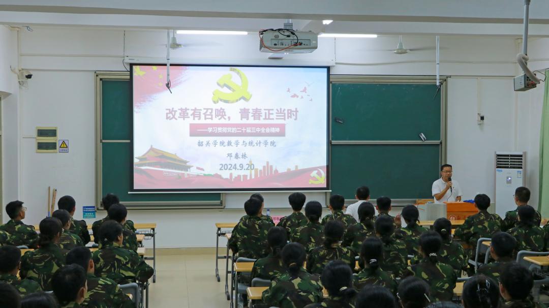 为深入学习贯彻党的二十届三中全会精神,引导广大同学坚定理想信念,强化使命担当,帮助他们扣好人生的“第一粒扣子”,9月20日晚上,数学与统计学院党委书记邓春林、院长宋杰分别为2024级全体新同学讲授“思政第一课”,辅导员朱慧珊、李泽坤老师参加学习。