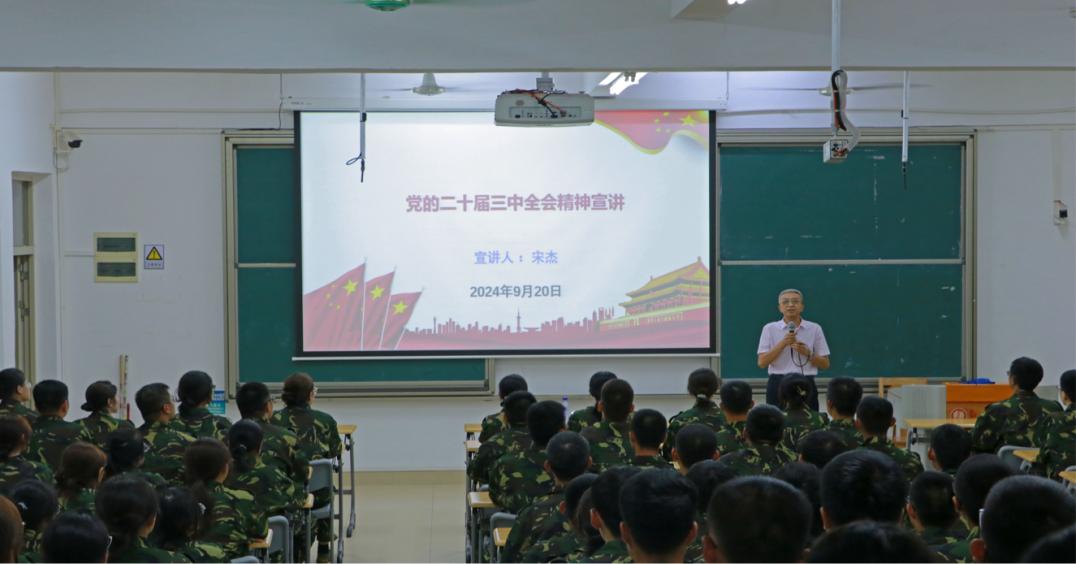 宋杰以“党的二十届三中全会的重大成果、进一步全面深化改革的主题、总目标、重大举措、重要原则、根本保证”等为主要内容,讲述了党的二十届三中全会的精神内涵。他指出这次全会不仅为国家的未来发展描绘了蓝图,也为每一位青年学子提供了广阔的舞台。他还以数学与统计学院“山里红”志愿服务队为例,勉励同学们抓住时代赋予的机会,积极参与社会实践,将所学运用到解决实际问题中,为谱写中国式现代化新篇章而努力奋斗。