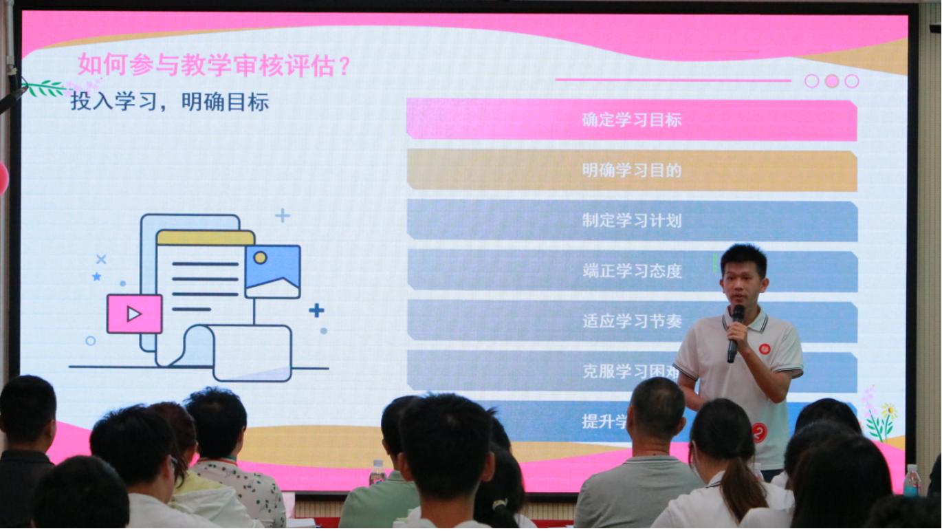 邓春林作了动员讲话,他围绕“新一轮本科教育教学审核评估”是什么,“评估”与“我”的关系,“我”该为“评估”做些什么,“怎么做”四个方面做了详细解读,提出了三点希望:一是增强紧迫感;二是化作真行动;三是展现真风采,并对主题班会、精彩笔记评选、劳动教育、宿舍评比、知识竞赛、主题演讲、学风巡查和每周考勤情况通报等系列活动提出要求。