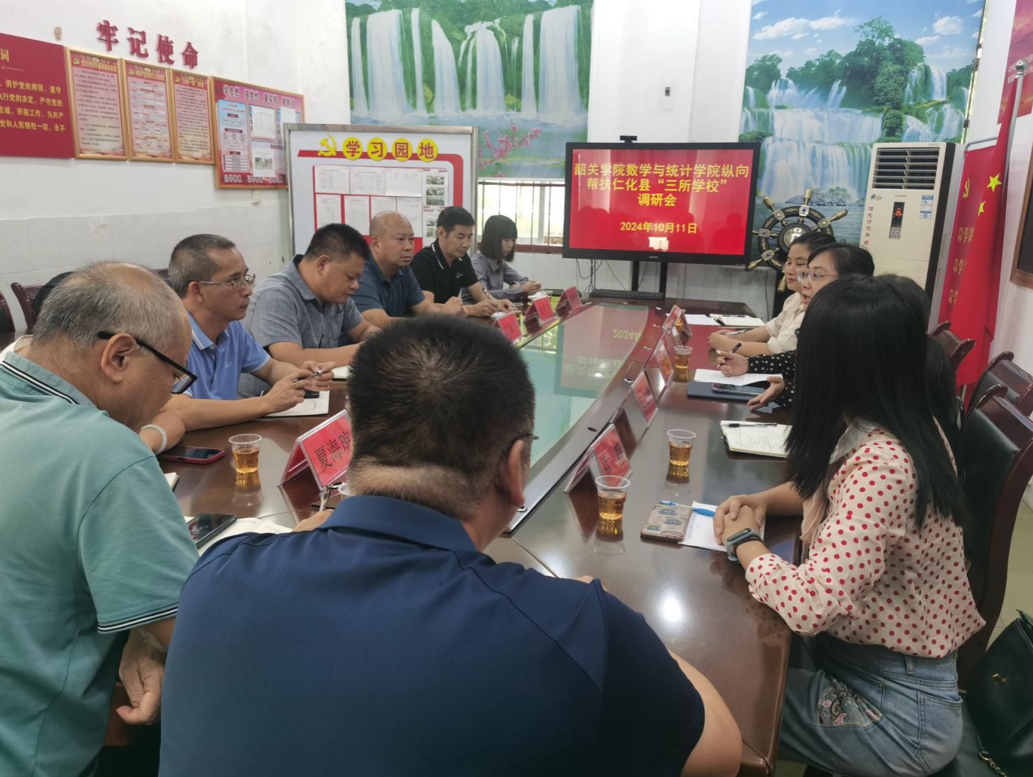 为进一步推进纵向帮扶“三所学校”工作,10月11日,数学与统计学院副院长罗亮、罗静博士、徐文锋老师以及教育科学学院易静博士赴仁化丹霞镇、董塘镇“三所学校”开展了调研,主要目的是深入了解学校的办学现状、面临的问题与挑战,以便为后续制定精准的纵向帮扶措施奠定坚实基础。