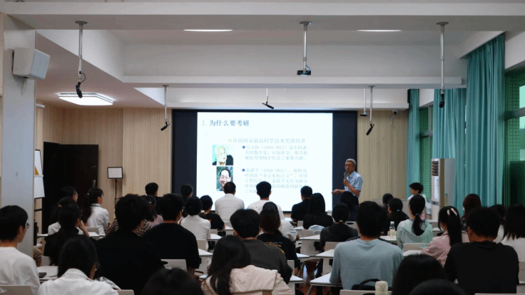 为深入贯彻落实立德树人根本任务,充分发挥朋辈榜样示范引领作用,帮助广大学子明晰考研规划、掌握科学备考方法,营造勤学奋进的优良学风氛围,2026年4月22日下午,数学与统计学院在旅港楼603教室成功举办考研经验分享会。学院院长宋杰、党委副书记肖和平、辅导员张伟锋出席活动,2023级至2025级共80余名有考研意向的学生到场参会学习。