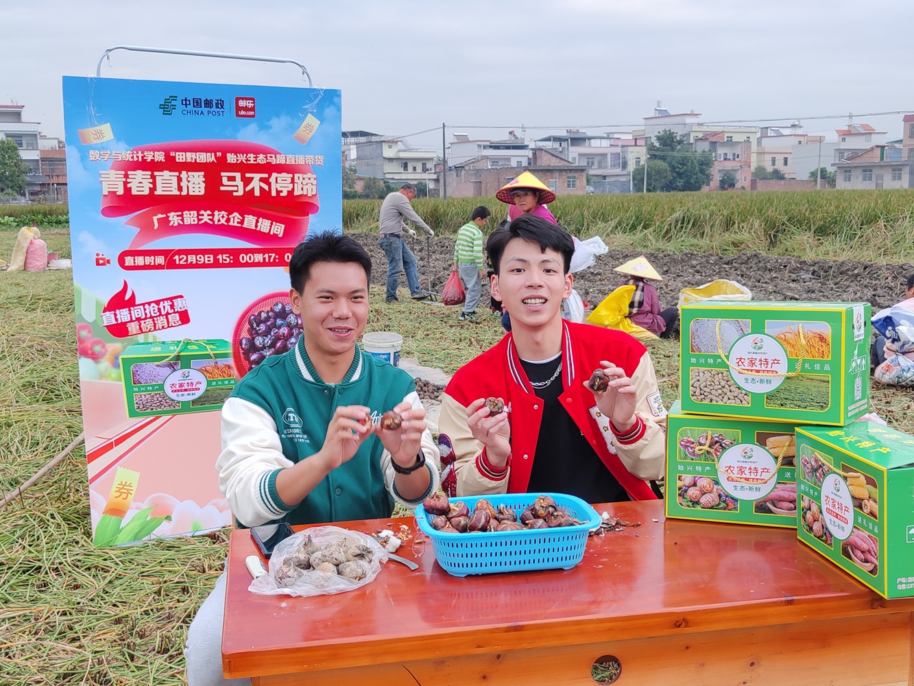 为拓展生态绿色农产品的销售渠道,12月9日,数学与统计学院直播队“田野团队”携手韶关邮政赴始兴县顿岗镇皇沙村开展“马不停蹄”电商直播带货活动。始兴县顿岗生态马蹄是广东省农村科技特派员、我校食品学院敬思群教授“马不停蹄实践团队”技术指导种植的。皇沙村村委书记徐爱生与“田野团队”主播邓彦均、易崇熙、陈玉珊共同参与。