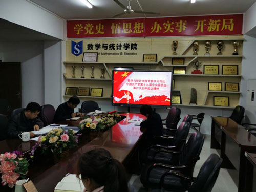 连日来,数学与统计学院认真学习宣传贯彻党的十九届六中全会精神。把深入学习宣传贯彻党的十九届六中全会精神作为当前和今后一个时期的重大政治任务抓紧抓好,以“三推动三实现”为抓手,精心谋划,推动全院学习入脑入心。广大师生纷纷表示,要以史为鉴、开创未来,埋头苦干、勇毅前行,在新时代新征程上赢得更加伟大的胜利和荣光。