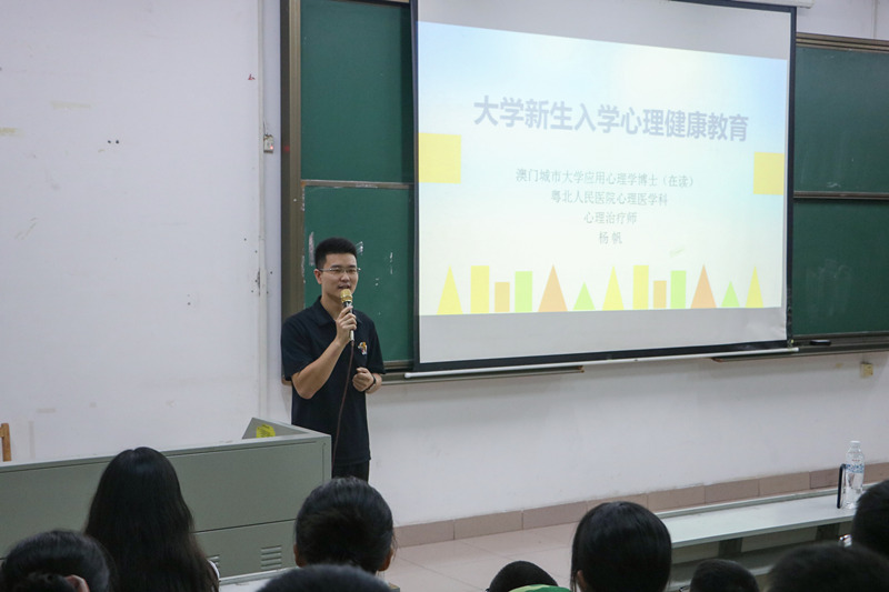 9月24日,在南一教学楼,数学与统计学院“星空讲坛”面向21级新生举办心理健康专题讲座。本次讲座特邀粤北人民医院心理医学科临床医生、国家注册心理治疗师杨帆博士作为主讲人。