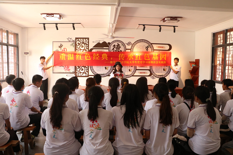 为庆祝中国共产党成立100周年,弘扬红色精神、培育红色情怀,促进乡村文化建设,7月16日,数学与统计学院暑期“三下乡”大学生暑期社会实践队在曹角湾村开展专题学习会。