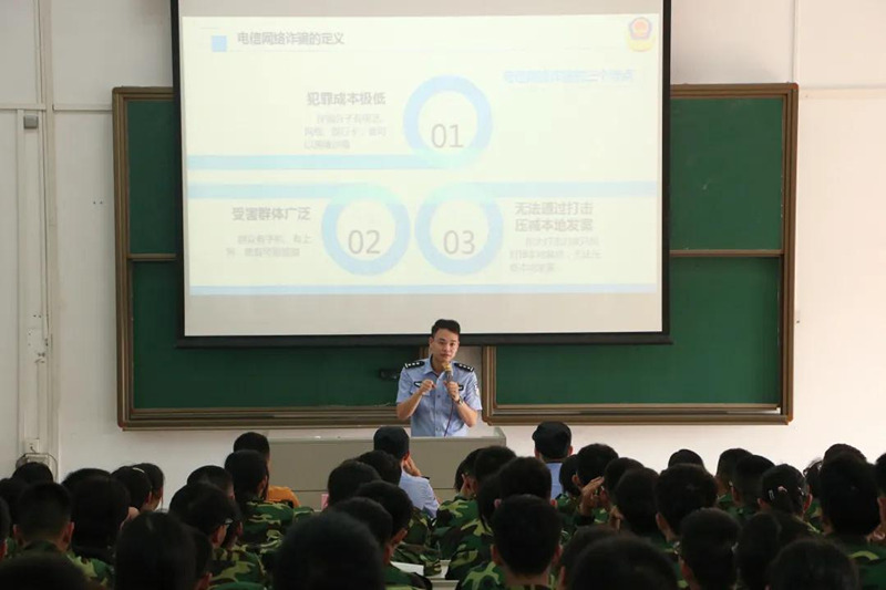 讲座开始,官金全首先播放了关于安全与防诈骗的视频,向新生展示了网络刷单、仿冒贷款、冒充学校收取学费等真实案件,让新生对诈骗的主要作案形式和手段有了更清晰的了解,还细致地给新生分析了大学生上当受骗的主要原因。随后,还传授新生防诈骗小技巧,告诉新生要牢记“三不”“三多”原则,即不轻信陌生人的电话和短信、不给陌生人转账汇款、不轻易泄露个人身份信息。