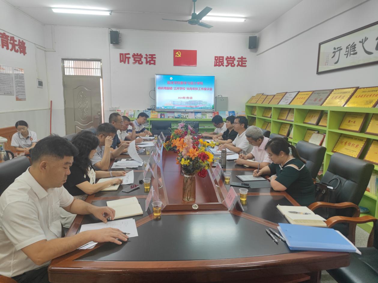 为摸清任务清单的重点难点,扎实做好纵向帮扶“三所学校”工作,7月5日,数学与统计学院党委书记邓春林、院长宋杰、党委副书记刘斯慧、副院长罗亮和相关骨干教师前往仁化县周田镇进行纵向帮扶“三所学校”调研座谈会。仁化县教育局副局长邓伟强及周田中学、中心小学、中心幼儿园的负责人参加座谈。