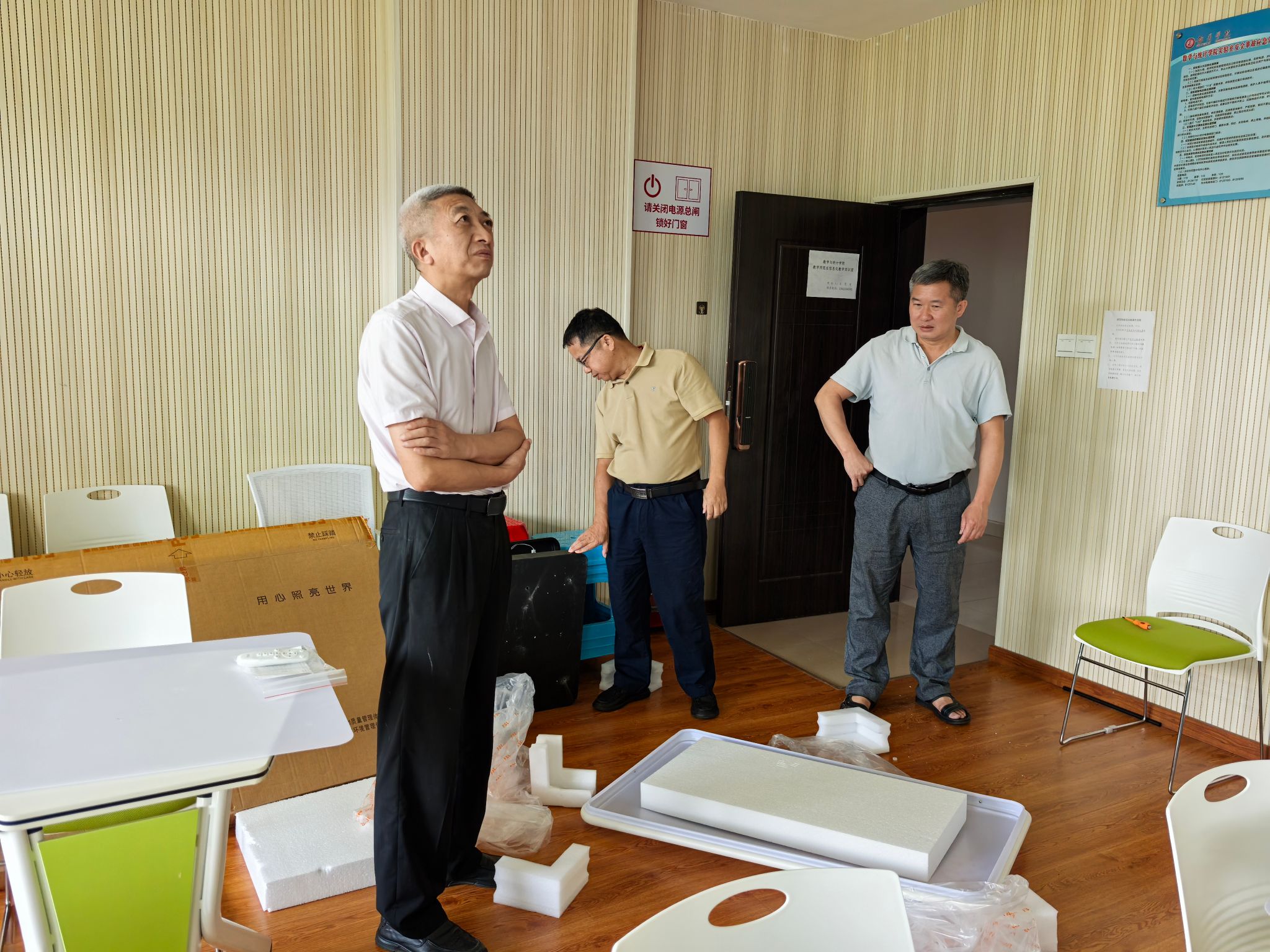 在安全教育学习的基础上,7月3日,党委书记邓春林、院长宋杰带队深入到每间实验室开展风险点排查行动,重点识别设备老化、用电安全等风险点,强调:“实验室安全是学院发展的生命线,必须做到隐患早发现、早整改、早闭环。”