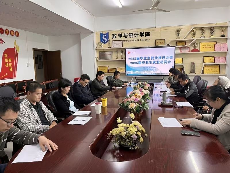 为落实学校就业工作要求,切实提升学院毕业生就业质量与服务成效,数学与统计学院于10月22日召开2025届毕业生就业工作总结会暨2026届毕业生就业工作动员会。学院全体领导班子成员、各系主任、各班班主任、全体辅导员参会,分析总结以往的就业工作经验,共同研判当前就业形势,凝聚思想共识,部署工作任务,为高质量完成就业目标吹响集结号。