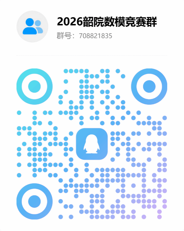 报名时间:即日至2026年5月21日,报名队员加入2026韶院数模竞赛QQ群:708821835(或扫描下图二维码)