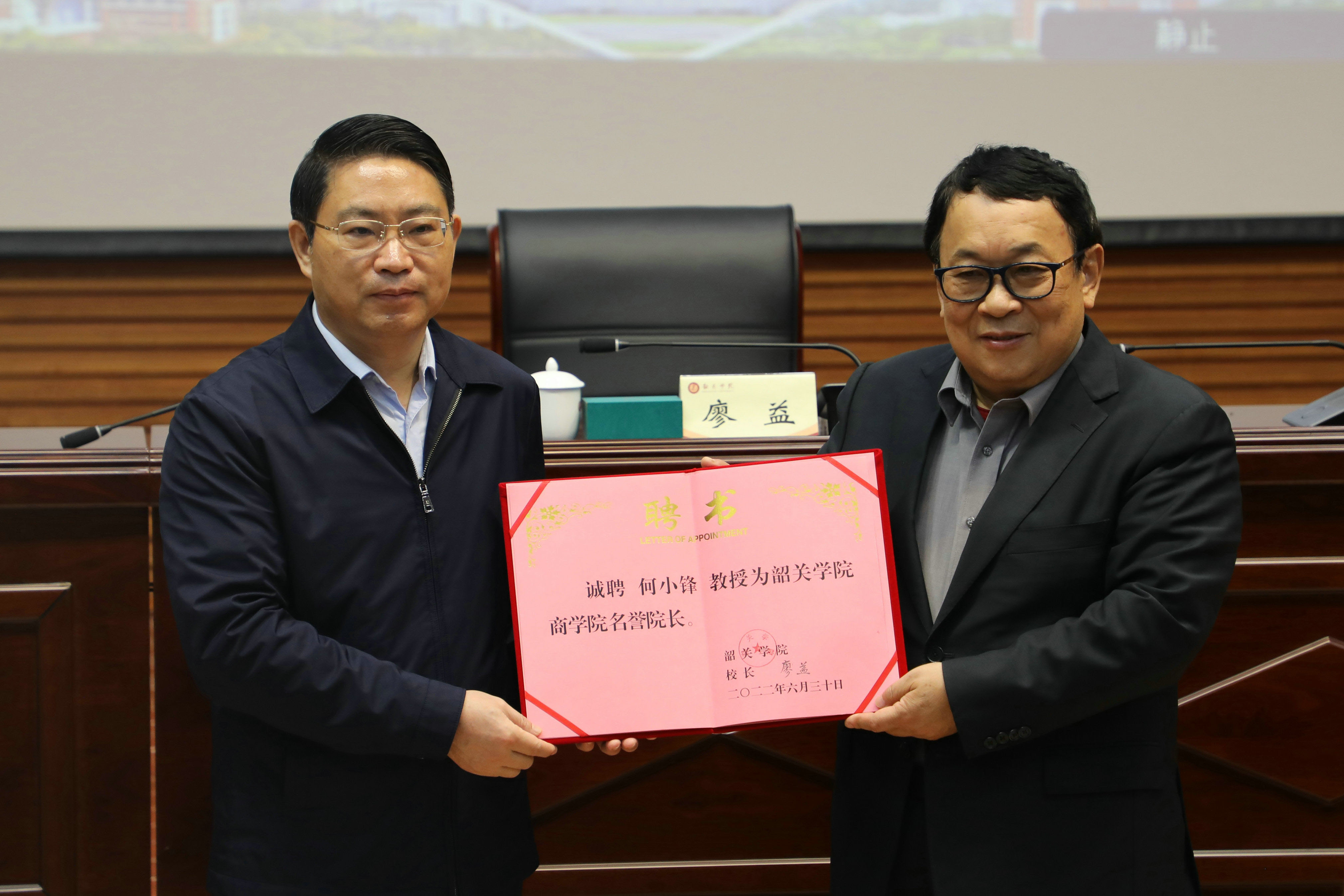 廖益对何小锋教授加入学校表示欢迎和感谢,对他热爱家乡、造福桑梓的情怀表示赞赏,并介绍了学校的办学历史、学科建设、师资队伍、人才培养、科学研究、服务地方等方面的情况。廖益指出,今年是学校的“申硕”之年,学校加大了高层次人才的引进力度,聘请何小锋为商学院名誉院长在商学院发展历程上具有重大意义。商学院要抓住机遇,发挥好何教授的影响力,更好地抓实抓好学科建设、专业建设,建设好一支高素质的学科团队与教师队伍,为地方经济社会发展培养新时代急需的应用型、复合型、创新型新商科人才。