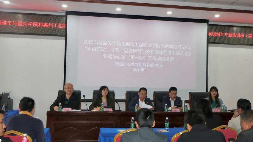 4月10日,商学院与南雄市、惠州工程职业学院联合举办的2024年“双百行动”《农业品牌运营与农村集体经济发展计划》第一期专题培训在南雄市正式开班。本次培训班邀请了商学院杨树臣教授授课,南雄市农业企业、专业大户、家庭农场和专业合作社等新型农业经营主体以及市级强镇富村公司代表70多人参加了培训。商学院副院长扈立家、学院“双百行动”负责人杨佳利、教师李立佳参加了培训班。开班仪式由南雄市乡村振兴服务中心副主任罗谋雄主持。