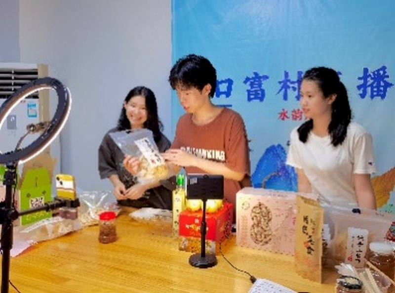 为进一步推动青年大学生将社会实践与乡村振兴深度结合,为“百县千镇万村高质量发展工程”贡献青春力量,2024年7月16-18日,商学院学生组建了直播实践队,通过抖音直播带货的形式推广南雄水口特产,提升了特产的知名度和销售热度,同时积极宣传南雄水口镇的历史,获得当地人的一致好评。