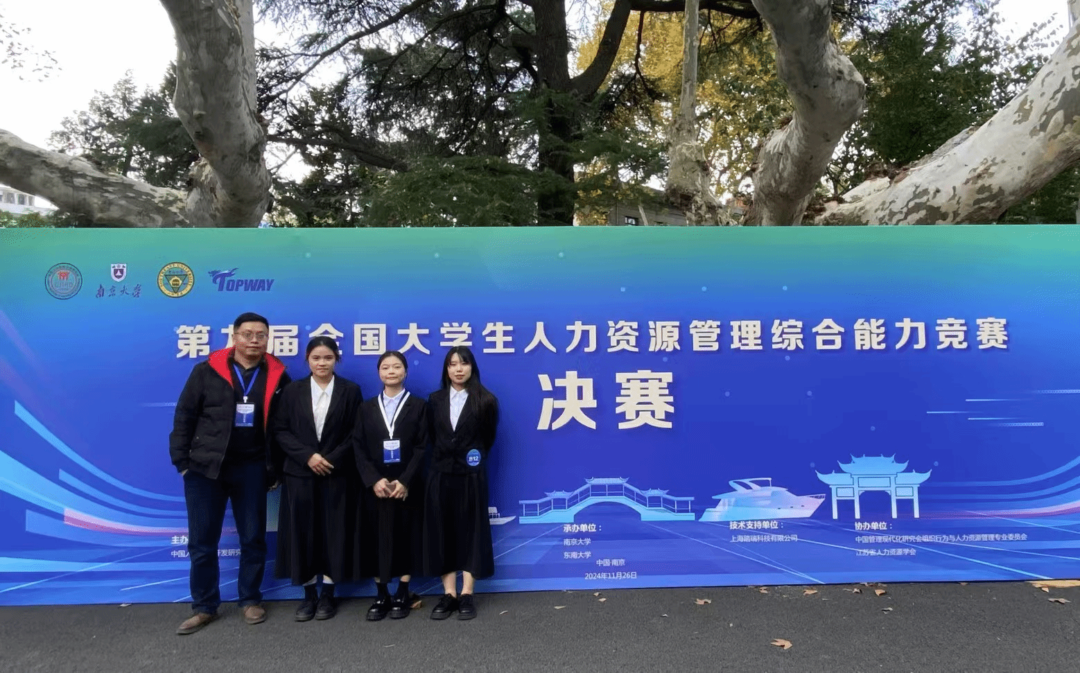2024年11月26日,由中国人力资源开发研究会主办,南京大学与东南大学联合承办、上海踏瑞科技有限公司提供技术支持、中国管理现代化研究会组织行为与人力资源管理专业委员会和江苏省人力资源学会协办的第九届全国大学生人力资源管理综合能力竞赛总决赛在南京市圆满落幕。我校学生团队以出色表现首次晋级全国总决赛并荣获二等奖,同时获得华南赛区区域赛一等奖1项、二等奖1项、三等奖2项的可喜成绩。