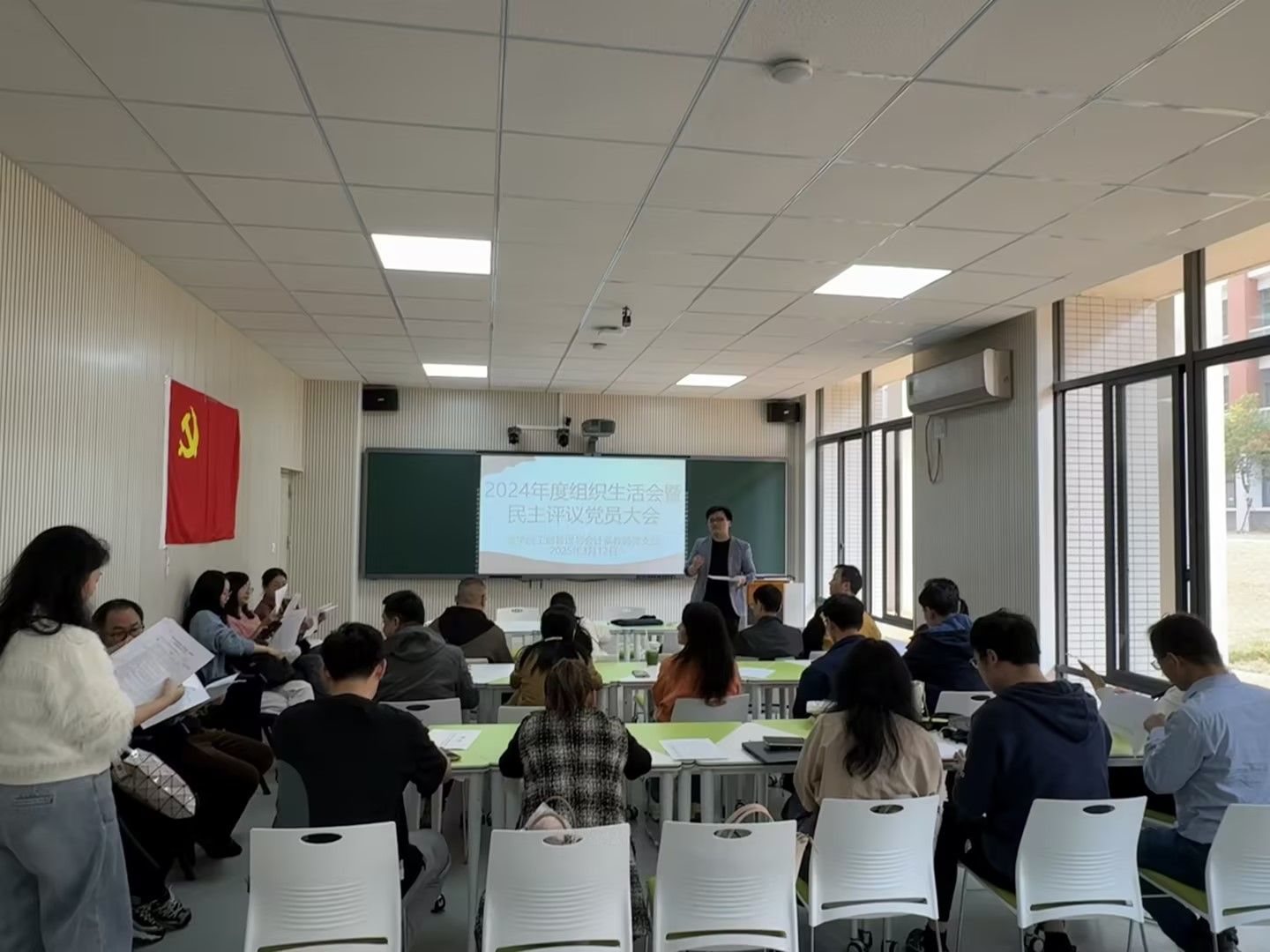 此次组织生活会和民主评议党员大会,为教师党支部全体党员搭建了一个深入交流、相互学习、共同提高的良好平台,有效增强了党支部的凝聚力和战斗力。通过自我剖析和民主测评,党员们更加清晰地认识到自身的优势与不足,进一步明确了未来的努力方向。大家纷纷表示,将以此次会议为契机,在今后的工作中不断改进提升,以更加饱满的热情、更加严谨的态度、更加扎实的行动,践行党员的初心和使命,为学院的高质量发展添砖加瓦。