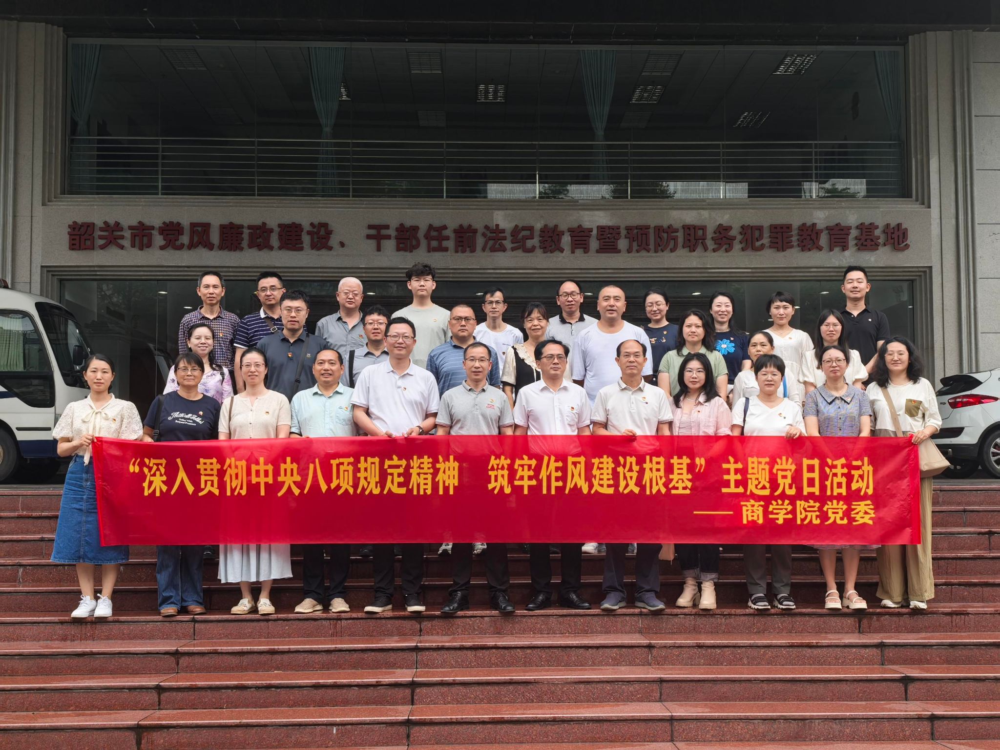为进一步学习贯彻习近平总书记关于全面加强党的作风建设重要论述精神,深化党员干部廉洁意识,筑牢拒腐防变思想防线,持续推动深入贯彻中央八项规定精神学习教育走深走实,引导广大师生党员增强纪律意识、坚定理想信念,商学院党委2025年5月21日下午,组织全院师生党员前往韶关市党风廉政建设、干部任前法纪教育暨预防职务犯罪教育基地开展题为“深入贯彻中央八项规定精神 筑牢作风建设根基”主题党日活动。