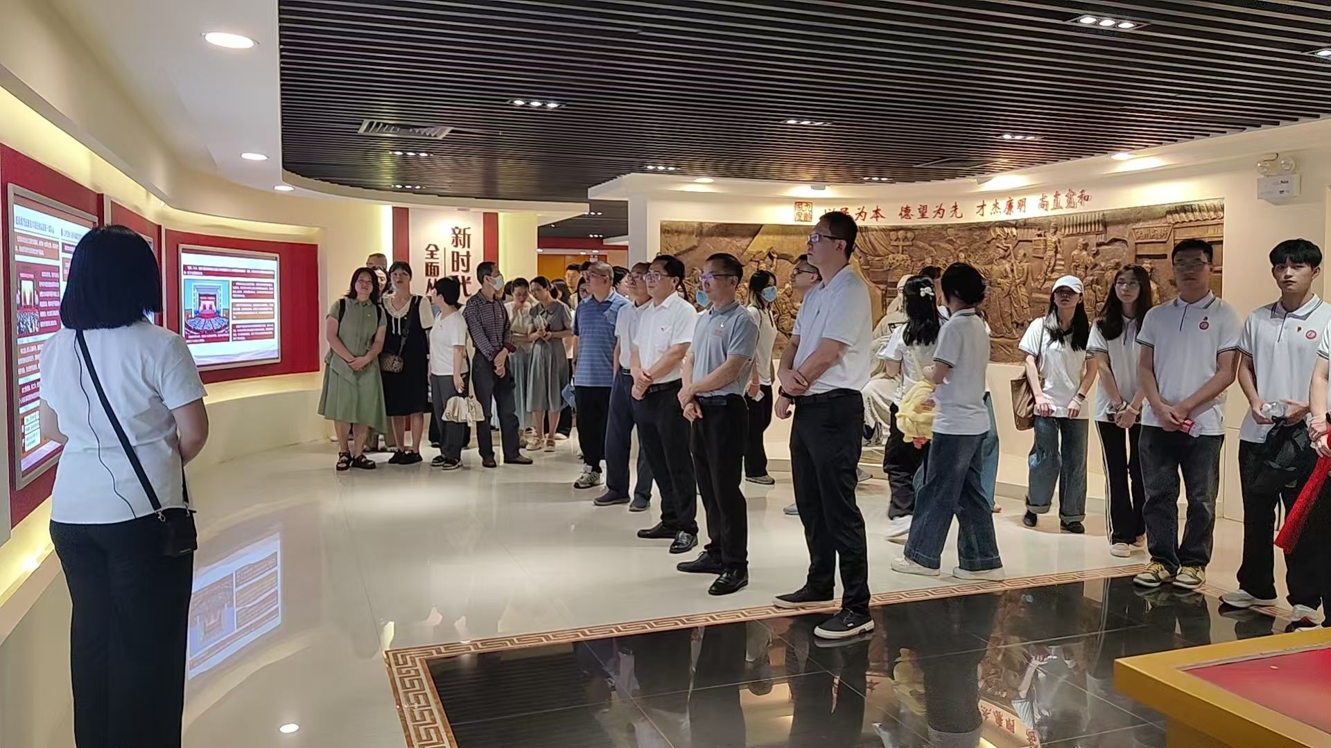 在基地讲解员的引导下,大家依次参观了“新时代全面从严治党”“党的百年纪律”“清官廉吏”“中国共产党纪律处分条例”等多个展览单元。一句句箴言警句和一幅幅真实照片,全方位展现了中国廉政文化的深厚内涵,系统梳理新时代以来党风廉政建设及党纪学习教育工作。大家时而驻足观看,时而交流探讨,在观览中接受思想熏陶和灵魂洗礼。在参观干部任前法纪教育暨预防职务犯罪教育基地,从“一念之差”到“一墙之隔”,鲜活的反面典型给社会、家庭、个人所带来的沉重代价令在场干部深受震撼,对反腐倡廉有了更清醒的认识和更深刻的思考,警醒参观者要始终将遵规守纪刻印在心,内化为日常而不觉的行为准则,始终保持忠诚干净担当。