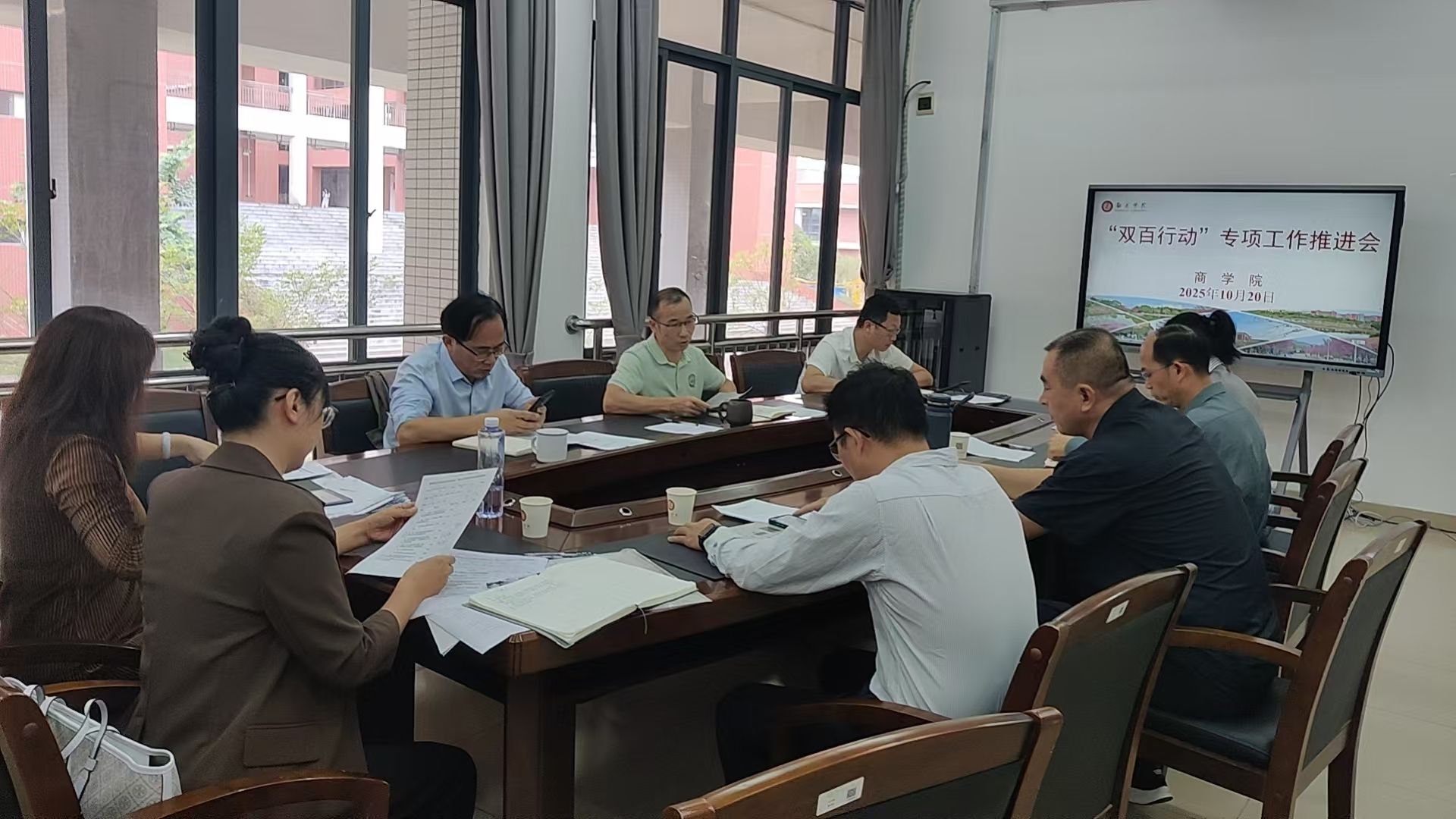 2025年10月20日上午,韶关学院商学院召开2025年“双百行动”专项工作推进会。学院领导班子全体成员、“双百行动”专班小组成员参加了会议。会议由学院党委书记张良有主持。