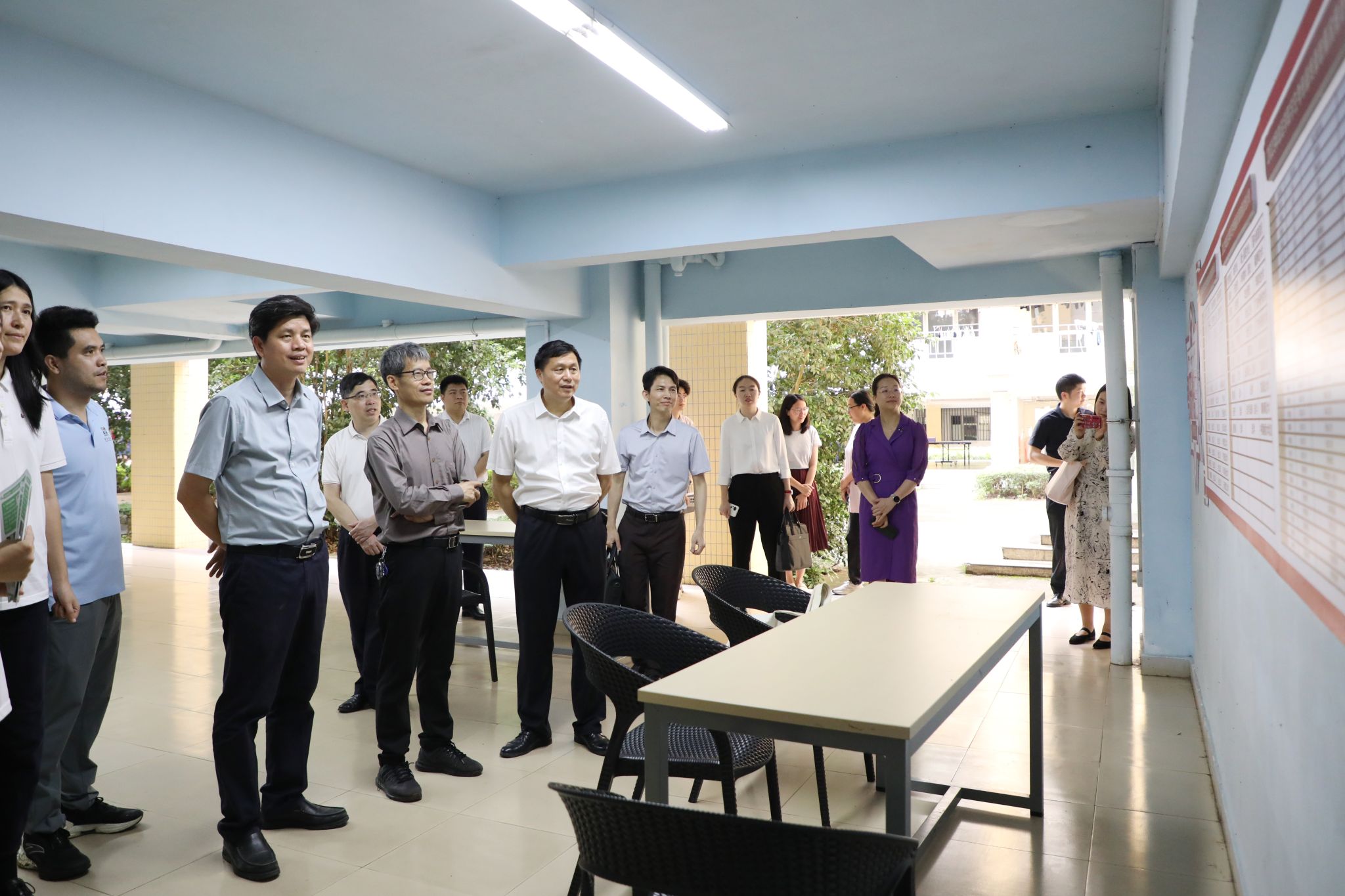 在参观交流的过程中,邓惠毅向欧洪湛一行介绍了我校校园建设、学生社区党建、华南教育历史研学等工作的有关情况。