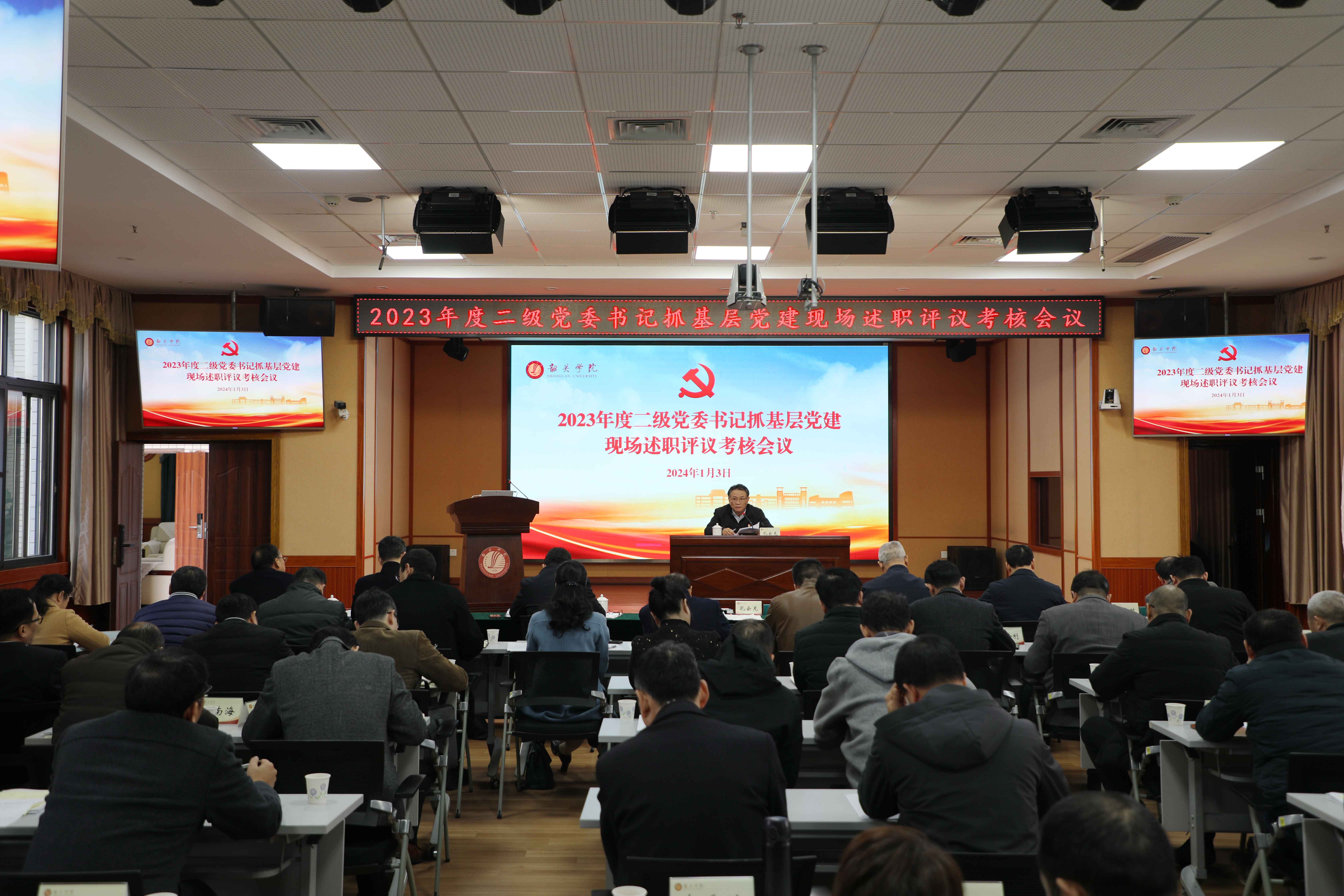 1月3日,我校召开2023年度二级党委书记抓基层党建现场述职评议考核会议,听取全校20个二级党委书记抓基层党建工作述职并进行评议考核。学校党委书记孔云龙主持会议并讲话。
