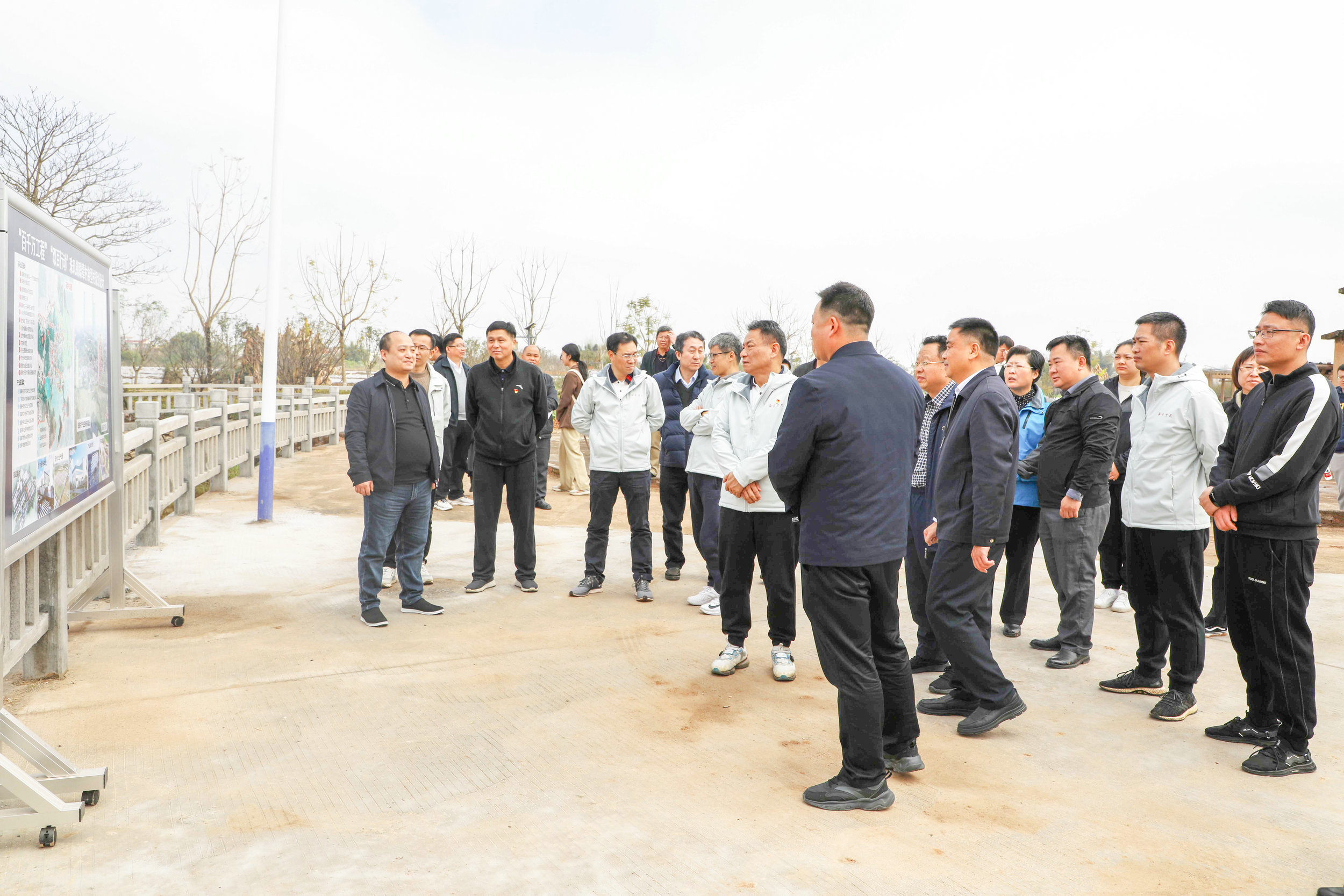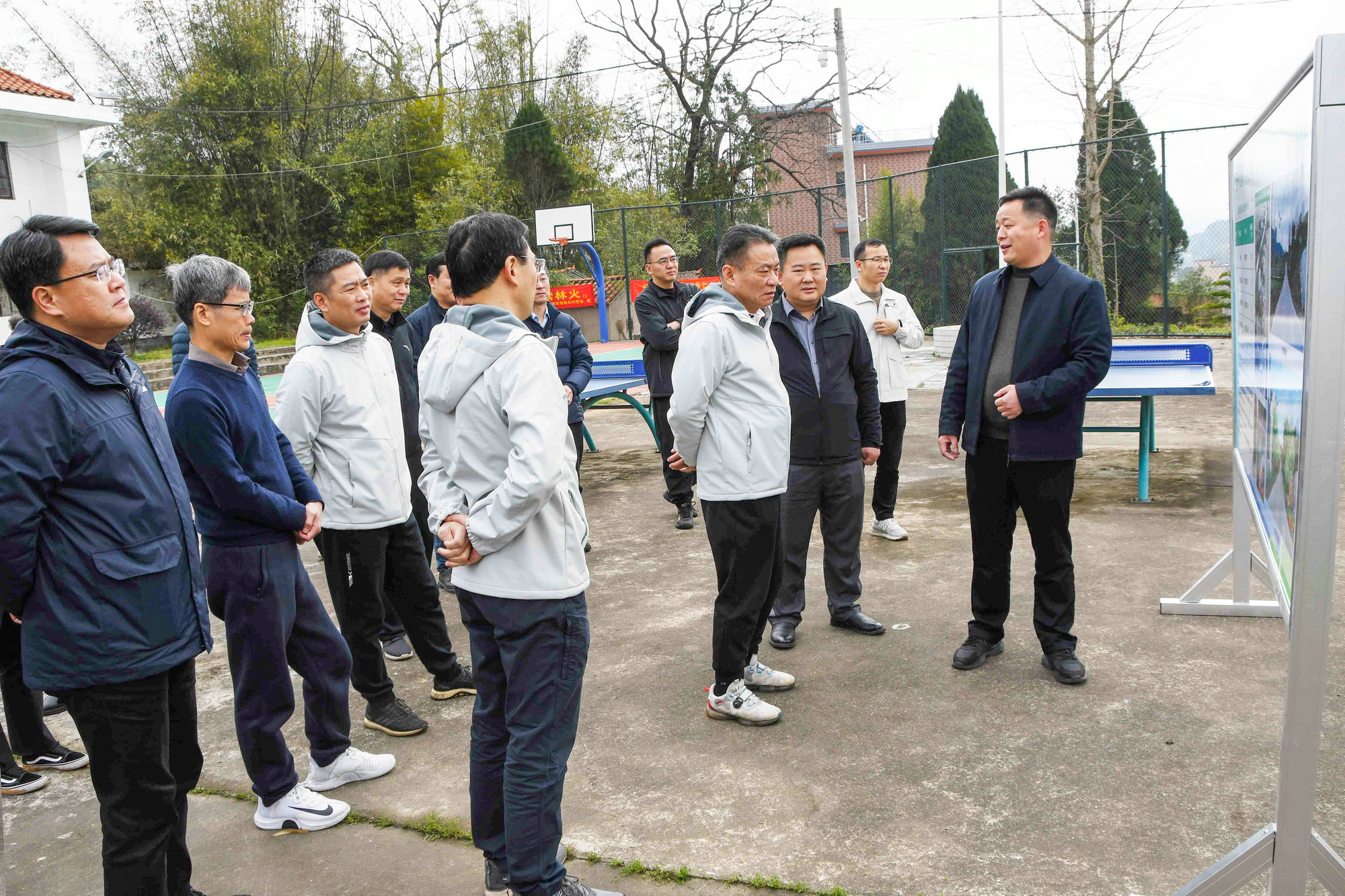 在聪背村,调研组听取了“双百行动”典型村设计规划并考察了落地项目——破旧泥砖瓦房变口袋公园,详细了解了项目的设计理念、实施过程以及取得的成效。孔云龙强调要依托区位条件和自然禀赋,以自然生态基地为基础,以现代农业产业与文旅产业为核心产业,推动一二三产业融合发展。