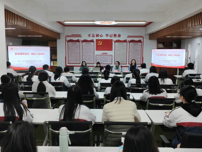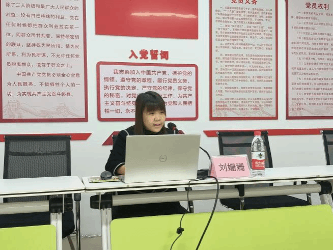 10月22日下午,文学与传媒学院党委副书记刘姗姗以“坚定理想信念,端正入党动机”为主题,于丹竹苑学生社区党员活动室为学院第八期入党积极分子培训作专题教学。