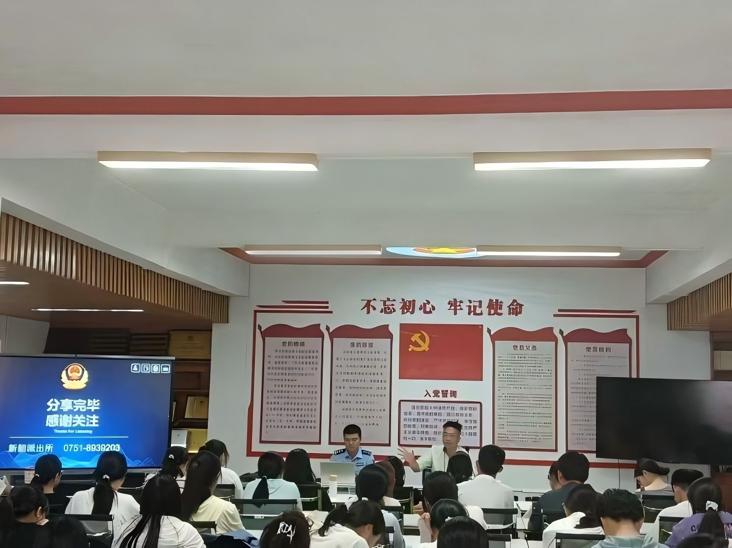 为切实提升学生防范电信网络诈骗的意识与能力,筑牢校园安全防护网,10月15日下午,文学与传媒学院联合保卫部在丹竹苑学生社区开展反电信网络诈骗暨校园安全普法教育讲座,讲座邀请新韶派出所杨警官主讲,文学与传媒学院2025级新生辅导员及新生代表共计80余人参加了讲座。讲座由学校保卫部廖志杰老师主持。