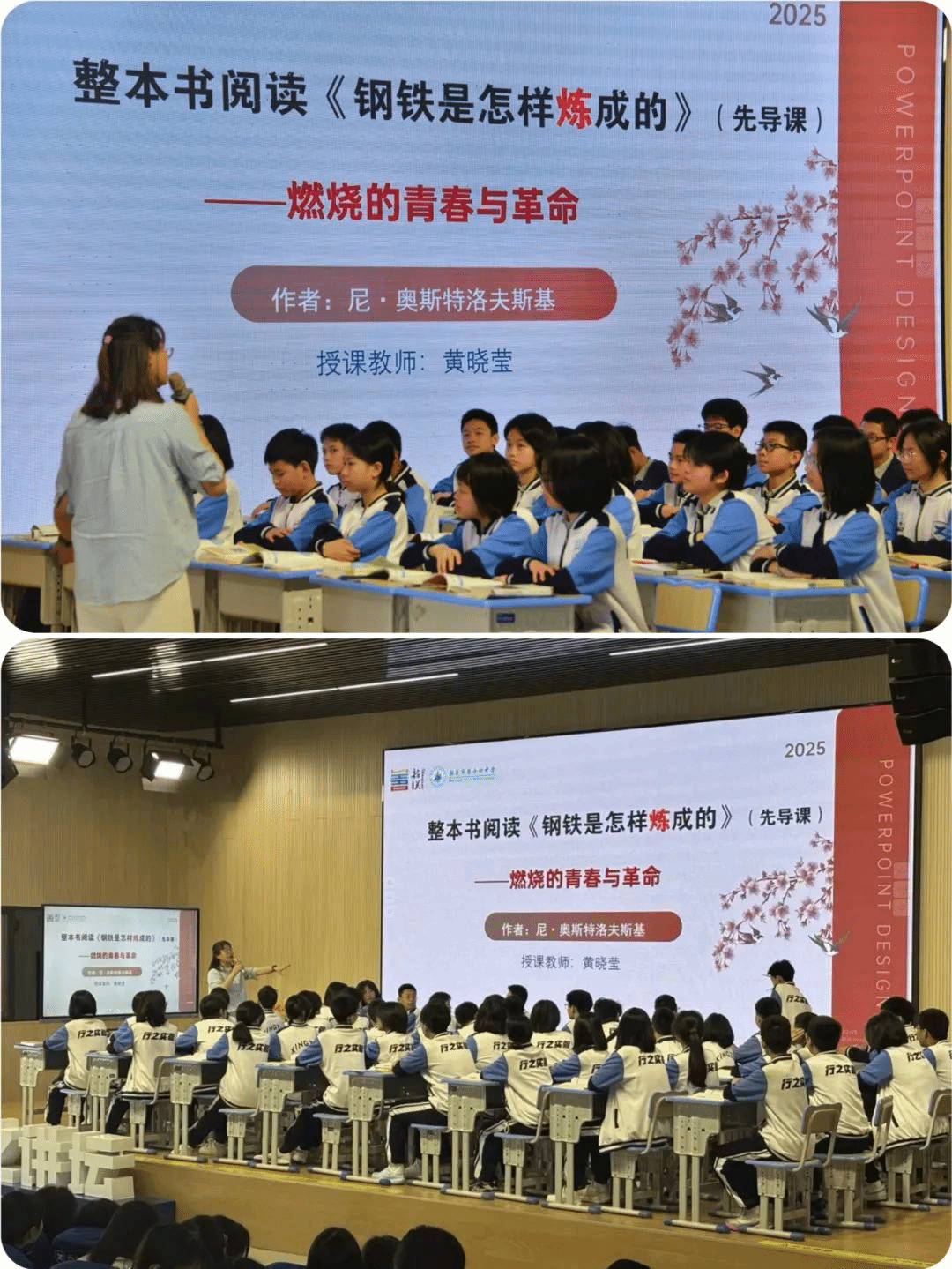 随后,韶关市第十四中学的黄晓莹老师以《钢铁是怎样炼成的》为例,呈现了一节基于国家中小学智慧教育平台的整本书阅读课。黄老师通过多版本翻译对比、情景任务设计等环节,引导学生深入文本,并借助智慧教育平台的双师教学案例,帮助学生完成阅读分享与点评。整节课生动活泼,体现了数字资源在名著教学中的高效运用。